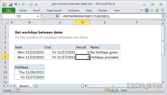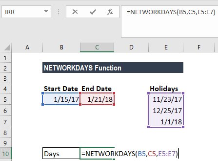 Real projects include holidays. NETWORKDAYS allows you to exclude them using a holiday list.